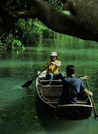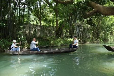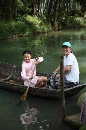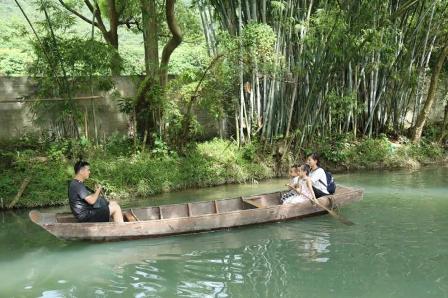 農場背后有一條小溪,無疑是避暑遮涼最好的選擇。水面上的小船,大家三五成群的下船,笨拙的劃動著手里的船槳,速度快慢、能否掌握方向什么的,都不重要,能讓大家找回童真的快樂才是重點。