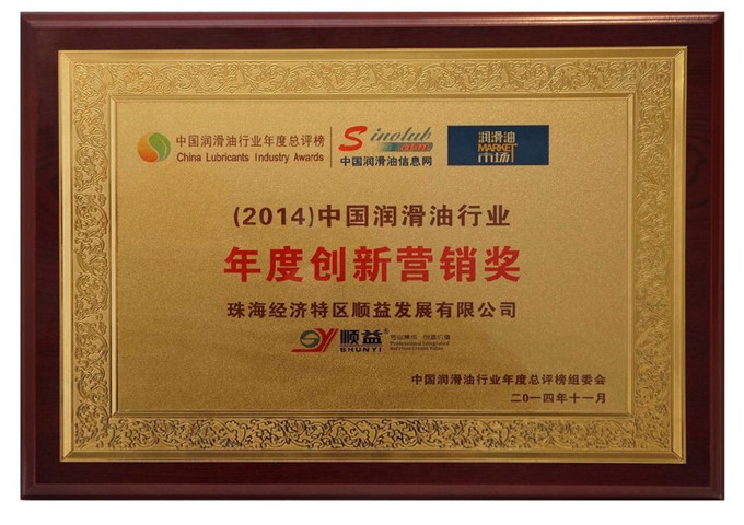 在“(2014)中國潤滑油行業(yè)年度總評榜”評選活動中,順益體系(集團)總裁張建新先生榮獲“中國潤滑油行業(yè)年度風云人物”、順益體系(集團)榮獲“中國潤滑油行業(yè)年度創(chuàng)新營銷獎”兩個項大獎。