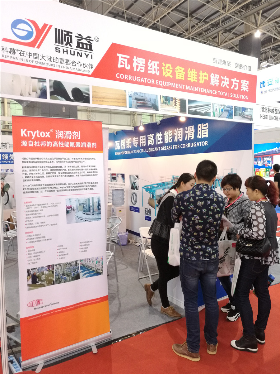 2016年“中國國際瓦楞展”今日(2016 年4月14日)在廣東現代國際展覽中心盛大啟幕,順益體系作為國內工業集成服務,首次與科慕公司(在杜邦拆分之后)攜Krytox瓦楞專用高性能潤滑劑和瓦楞紙設備維護解決方案亮相展會現場(展位號:2A118-119 )。