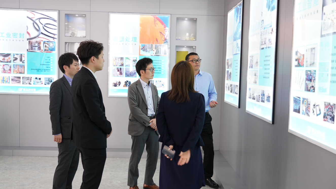 來訪人員先后參觀了順益科技園新材料應用創新基地建設與成果展、工業集成服務展示體驗中心、德國漢高樂泰體驗中心、Krytox高性能潤滑劑應用展示廳、新能源汽車新材料應用展示廳、高性能彈性體及塑料應用展示廳、特種功能涂層材料應用展示廳及順益科技園新材料科普教育基地等地。參觀人員對順益新材料新技術應用創新基地的發展取得的成績給予了充分肯定。雙方在科技園會議廳進行了深入的交流探討,相信雙方一定能在合作共贏的基礎上,共促彼此的發展。